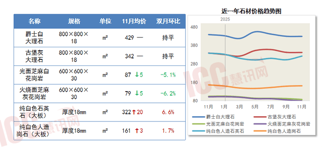 11月石材价钱涨跌互现,相关制制业需求连结增加,经评估。