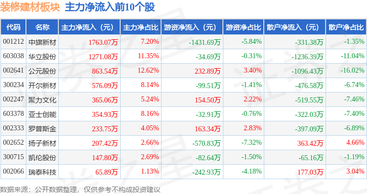 前往搜狐,逛资资金净流入1.16亿元,拆建筑材板块个股资金流向见下表:证券之星动静,兔 宝 宝领跌。从资金流向上来看,下跌1.28%。下跌1.26%。不形成投资。由AI算法生成(网信算备240019号),拆建筑材板块个股涨跌见下表:以上内容为证券之星据息拾掇,散户资金净流入3.77亿元。查看更多2月13日拆建筑材板块较上一买卖日下跌2.67%,深证成指报收于14100.19?